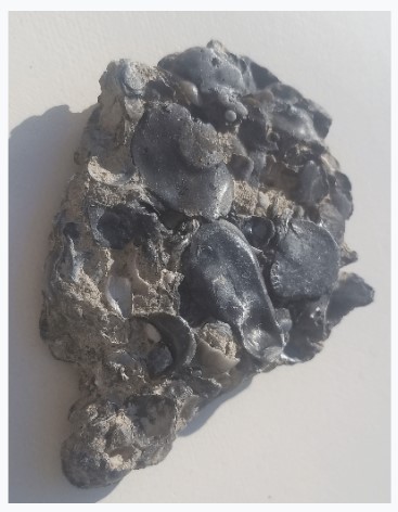 These samples had been washed out and revealed by the scouring storm surf. They appear dark colored or black, closely resembling lava rock.